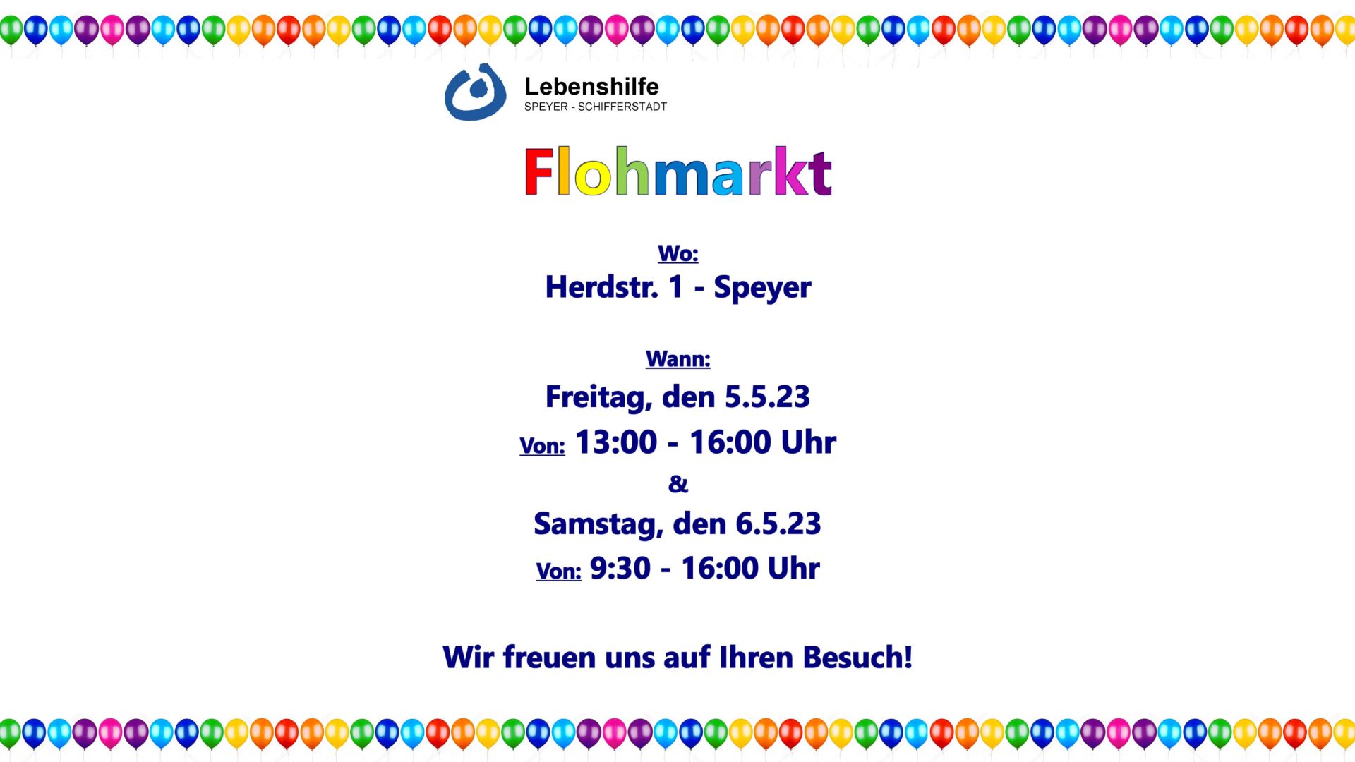 Am 05.05. uns 06.05.2023 veranstalten wir einen Flohmarkt in der Herdstraße 1 in Speyer. Die gesamten Erlöse kommen unseren Bewohner*innen zugute.