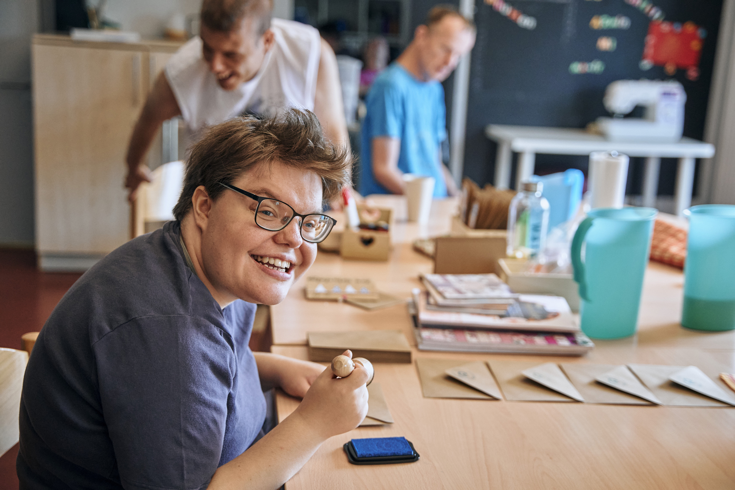 Ein weiterer wesentlicher Schwerpunkt unserer Arbeit liegt in der Erbringung von Förderung und Therapie etwa in unseren Tageförderstätten für Menschen mit komplexeren Beeinträchtigungen, unserer Kunstschmiede, dem Atelier Molemol oder aber auch in unseren Tagesstrukturen.