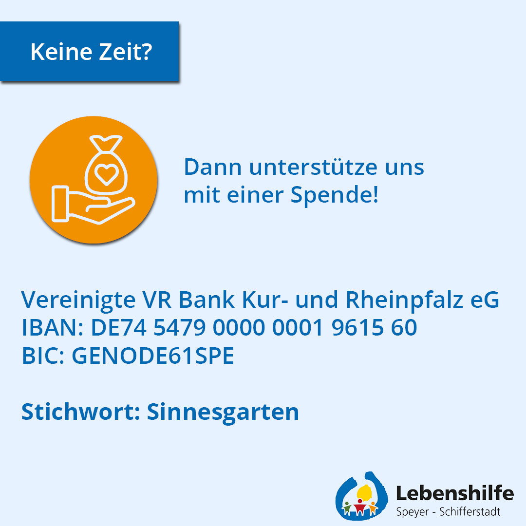 Sie möchten uns unterstützen, aber das Online-Formular ist nicht das Richtige für Sie? Kein Problem! Sie können auch ganz klassisch per Überweisung spenden. Kleinere oder größere Geldspenden können Sie an unser Spendenkonto der Lebenshilfe Speyer-Schifferstadt gGmbH übermitteln, um unsere wertvollen Dienste und Einrichtungen zu fördern. Bitte geben Sie im Verwendungszweck „Spende“ sowie Ihren Namen und Ihre Anschrift an, wenn Sie eine Spendenquittung wünschen.